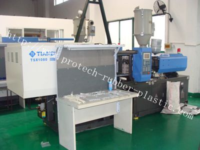 Injection molding is accomplished in a molding press specifically designed for that purpose. The mold is closed and locked into place by the operation of the press itself. Uncured rubber is pre-heated in an injection chamber prior to being injected into the mold itself, which “plasticizes” it allowing it to flow more readily through the injection system and into the cavities. This, along with the clamping and injection force provided by the press, allows curing temperatures to be elevated, shortening the curing cycle.